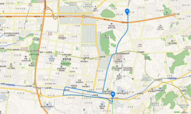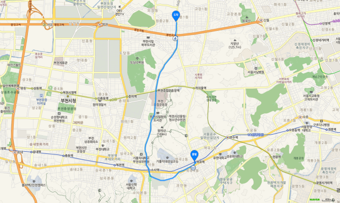 춘의역 하차 후 75번 버스 오시는 길