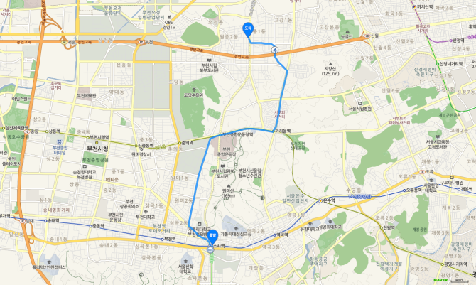 춘의역 하차 후 70-2번 버스 오시는 길